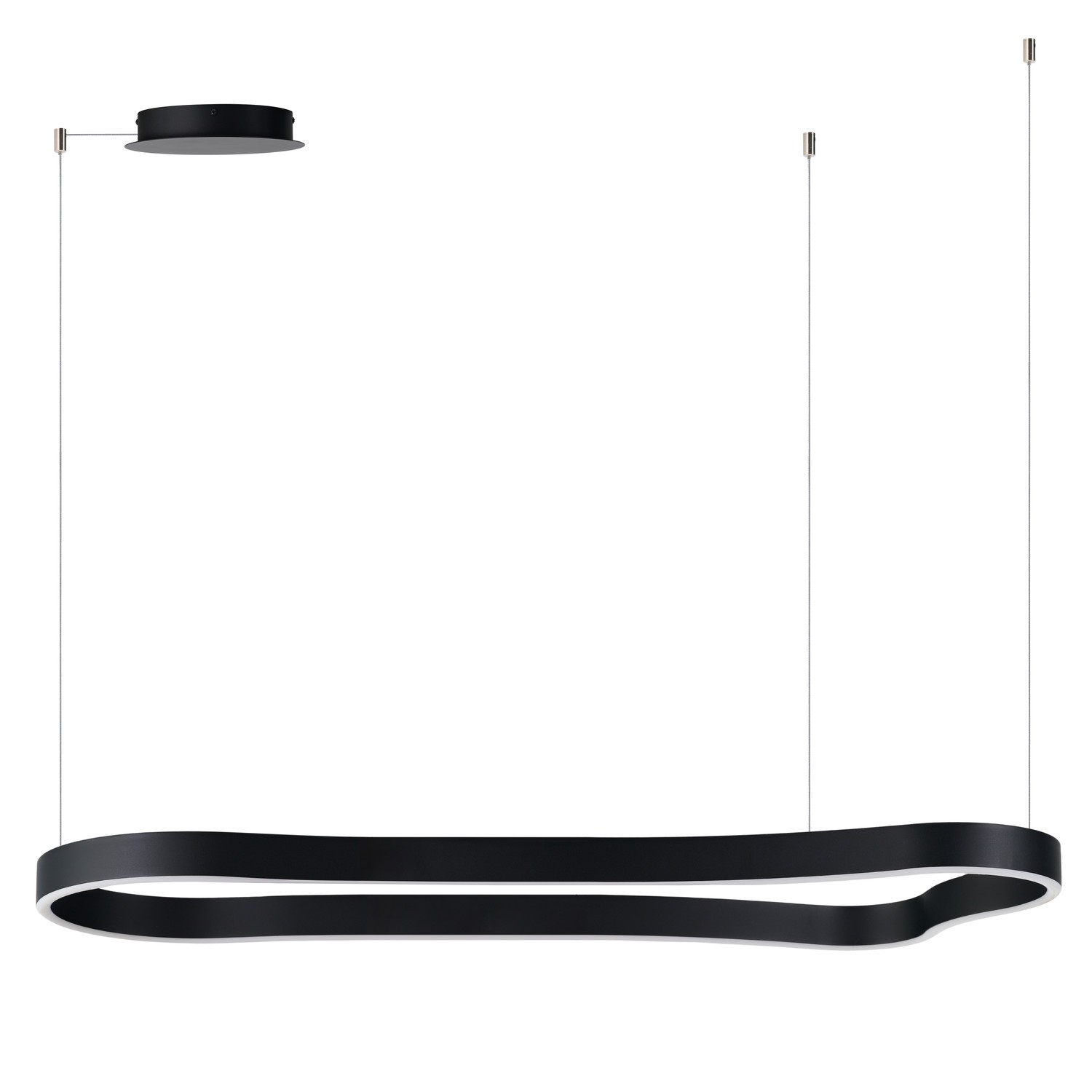 Lampa MIRABELLA 120 3000K DIMM BK to nietuzinkowy produkt, chętnie wykorzystywany w roli oświetlenia głównego lub strefowego, zwłaszcza w przestronnych pomieszczeniach o charakterze reprezentacyjno-rekreacyjnym. Trafia zatem do salonów nad zestaw mebli, do kuchni nad wyspę lub stół do rodzinnych posiłków bądź do sypialni nad łóżko.